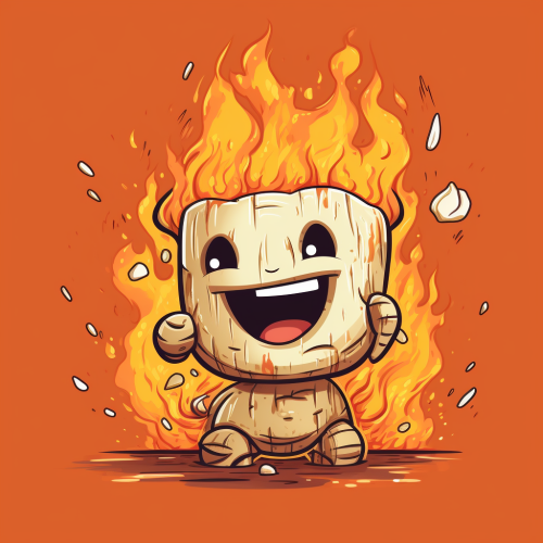 illustration of an animated marshmallo on fire and distressed, cartoon style