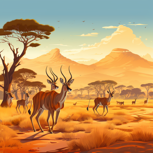 antelopes fleeing, with a beautiful landscape background, full hd cartoon image