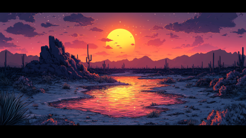 Craft an enchanting illustration where the celestial elements take center stage--a vast sky adorned with myriad stars and a colossal, luminous moon dominating the canvas. Utilize graceful, swirling lines to depict the celestial dance of stars and the moon's radiant presence, filling most of the illustration. Illustrate the moon as a captivating focal point, radiating its soft, ethereal glow across the expanse. Let the stars twirl and spiral in whimsical patterns around the moon, creating a celestial symphony against the night sky. Beneath this cosmic display, portray a lush jungle embraced by the moonlight's gentle touch. Employ intricate yet fluid lines to outline the foliage and trees, capturing the dreamlike quality of the nighttime scenery. Utilize a captivating illustration style that merges the cosmic beauty of the sky with the enchanting details of the jungle below, blending the fluidity of the celestial lines with the intricacies of the jungle's foliage. --ar 16:9 --v 6.0