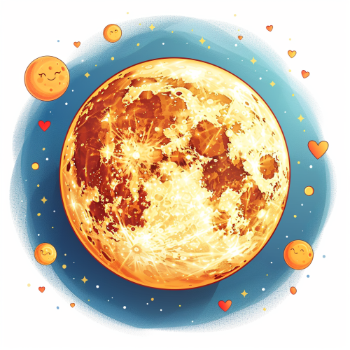 fun cartoon 2D vector of a moon of love, simple design, plain white background, --s 750