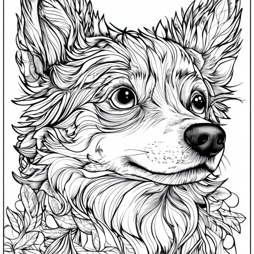 Coloring page for kids, An intricate and beautifully colored , originally a black and white coloring page, now filled with a vibrant. watercolor style. featuring a khoikel hondje cartoon style, thick lines, low detail, no shading, no pencil, no frame --v 6.1