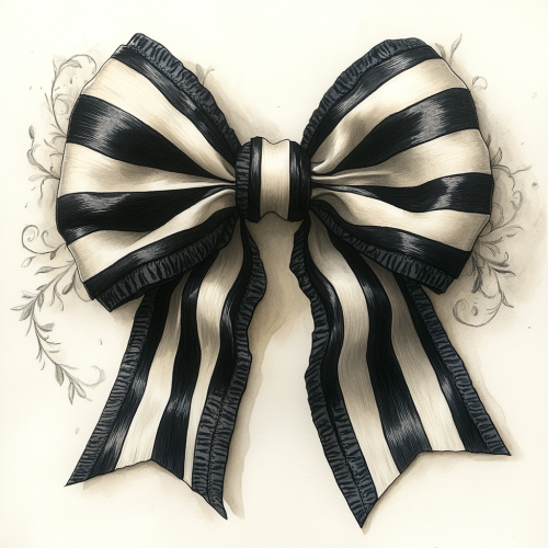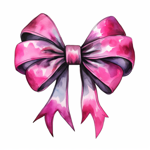 watercolor style, cartoon Christmas bow, in colors of black, white and magenta, clipart, isolated on white background --chaos 20 --no background