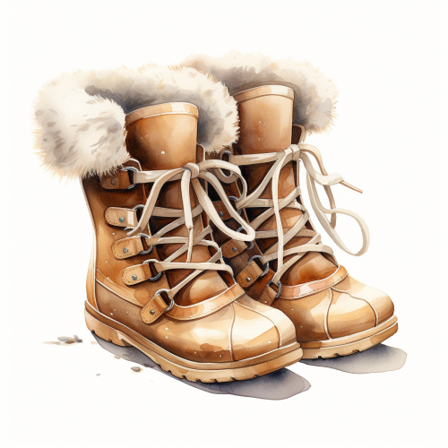 cartoon art UGG Bailey Bow boot, white fur, watercolor, white background, clipart --s 250