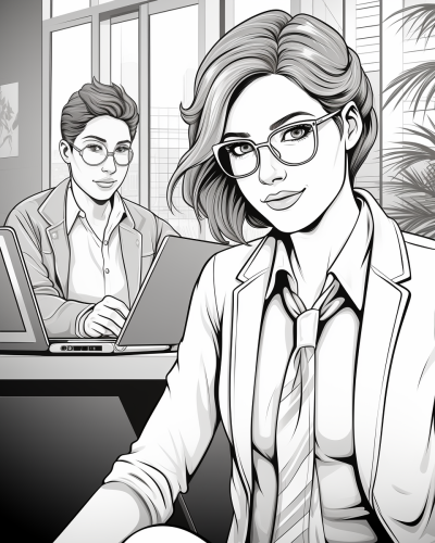 very light black-and-white illustration sketch with a vector clear background of beautiful female wearing a dress sitting on a invisible chair talking to herself and holding a glass of wine, minimalist, full length