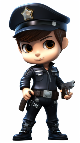 [9aafc1631] Cartoon Boy Police, Chibi style, 3D, dressed in police uniform, wearing a police hat, with a leather holster equipped with a revolver hanging from the waist, all over, Chibi style --no 不要女孩 --v 5.2 --ar 9:16 --c 0