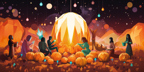 halloween pumpkins and monsters, 8k, vibrant colors, highly detailed, dark outlines, uhd --niji 5 --ar 3:1