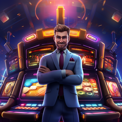 Create an image that captures the glamorous and luxurious atmosphere of an online casino's birthday party, blending the styles of "The Great Gatsby" and "Casino Royale." The scene should feature an opulent, art-deco-inspired setting with golden accents, chandeliers, and luxurious décor. Guests in 1920s-style attire are mingling, with some playing casino games like poker and roulette. Elegant women in flapper dresses, men in tuxedos, and a suave, James Bond-like figure add to the sophisticated ambiance. The online casino’s branding, "Mr Bit," is subtly integrated into the design, perhaps as a logo on the tables or on a digital screen in the background. The mood is festive, classy, and exclusive, capturing the essence of a high-end, roaring 20s casino celebration.