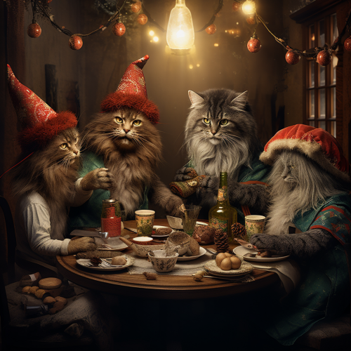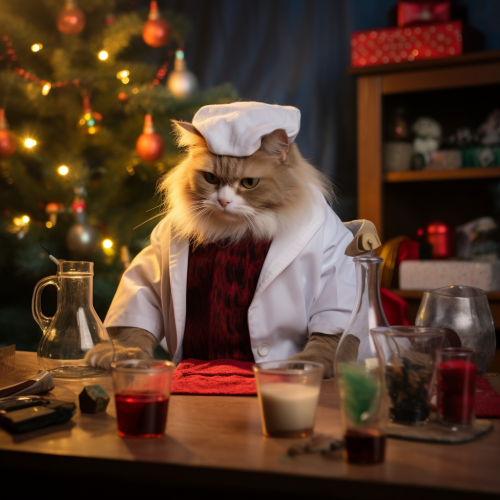 cat eating Sweet potatoes, christmas, realistic, captured by Canon EOS R camera, --aspect 6:9