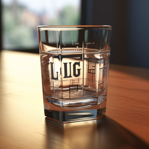 a glass surface with the word "LIG" engraved on it, isometric, hyperrealistic