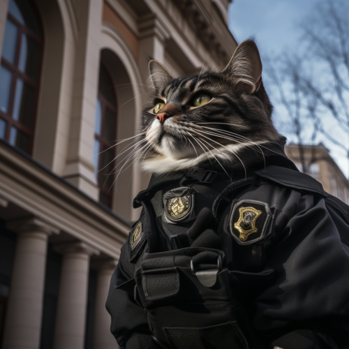Cat Intelligence oficer, CIA agent, Central Intelligence Agency, in Moscow, spy, Shot on 70mm, Ultra - Wide Angle, unreal engine, Depth of Field, Tilt Blur, Shutter Speed 1/ 1000, Gamma, 32k, Super - Resolution, Megapixel, ProPhoto, Frontlight, Backlight, Rim Lights, Natural Lighting, Incandescent, Cinematic Lighting, Studio Lighting, Soft Lighting, Volumetric Lighting, Volumetric, Split Lighting, Beautiful Lighting, Accent Lighting, Global Illumination, Ray Tracing, Materiality, Ambient Occlusion, Scattering, Glowing, Glow - In - The - Dark, Shadows, Rough, Shimmering, Soft Body, Ray Tracing Reflections, Lumen Reflections, Screen Space Reflections, Chromatic Aberration, RGB Displacement, Scan Lines, Ray Traced, Ray Tracing Ambient Occlusion, Anti - Aliasing, Shaders, OpenGL - Shaders, GLSL - Shaders, Post Processing, Post - Production, Cel Shading, Tone Mapping, insanely detailed and intricate, hypermaximalist, elegant, hyper realistic, lace--ar 7:5 --style raw