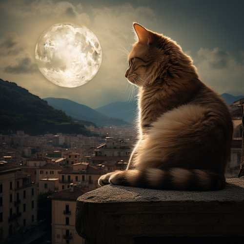 A nighttime scene in the city with a glowing full moon high in the sky. The buildings are illuminated by the soft glow of the moon, casting long shadows on the streets below. The style is slightly cartoonish, with exaggerated features like rounded buildings and windows reflecting the moonlight. The colors are deep blues and purples with the bright yellowish-white moon standing out. The city feels calm, serene, and dreamlike under the moon's light, with twinkling stars scattered across the sky