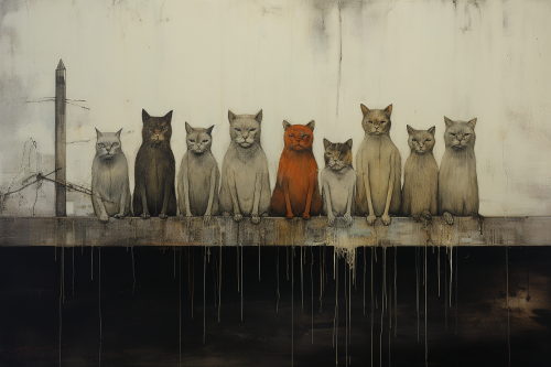 Three unique, whimsical, colorful owls, with big eyes, sitting on the fence, in the style of a guweiz and tim burton, with a bold, bright pastel color palette, a detailed background, and a hyper-realistic style. --ar 128:91 --s 250 --niji 6