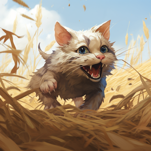 a light gray cat in a yellow wheat field, pure blue sky , minimal illustration, minimal illustration style,is in the style of Ryo Takemasa, bird's eye view, award winning illustration artwork, graphic, Japanese countryside, minimal art, Ryo Takemasa style, minimal poster, minimal composition, commonwealth magazine cover. 8k, --ar 9:16 --v 5.2 --s 750