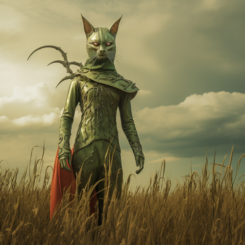 A mystical black cat sitting in a vibrant field of glowing, fantastical flowers under a starry night sky. The cat is adorned with intricate cosmic patterns, swirling galaxies, and nebulae in its fur, creating an ethereal and otherworldly appearance. Surrounding the cat are vivid flowers in shades of purple, orange, and blue, glowing softly. In the background, there are rolling hills and distant mountains illuminated by a crescent moon and shimmering stars. The scene is surreal and magical, blending nature with cosmic elements, in a dreamlike atmosphere. --ar 3:4 --s 250 --v 6.0