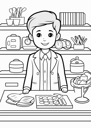 Coloring page for kids, style of coloring book, a picture depicting Kid with Money trading, white background, vector illustration by flaticon and dribble, behance hd, made in figma, adobe xd, sketch, ux, ui, ux/ ui, crisp and pixel - perfect design, black and white, minimalism, flat colored outline icon style, simplistic design, no black fill, cartoon style, --ar 13:18