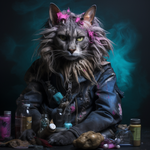 A heartwarming scene of cats helping the homeless and sick animals. The cats are engaged in various acts of kindness: some are distributing food and blankets to other animals in need, while others are gently comforting and caring for sick animals. The setting is a caring and supportive environment, with makeshift shelters and cozy spaces. The atmosphere is filled with compassion and empathy, highlighting the cats’ dedication to providing aid and comfort to those less fortunate.