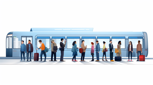 hand-drawn cartoon style, full body, bus station, white background --ar 16:9 --v 5.2