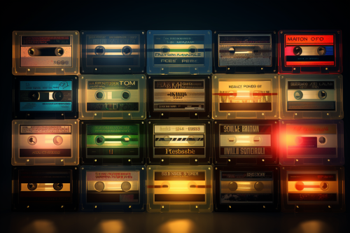 wide shot of cd mixtapes, handmade fonts covers, michel gondry style --v 5.2 --ar 3:2