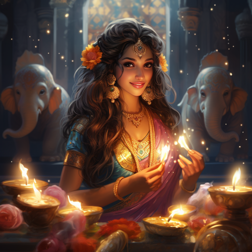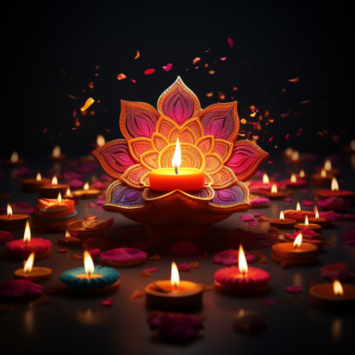 happy diwali greetings, keep it elegant, make it beautiful, don't have people, have lots of lights, make it colorful