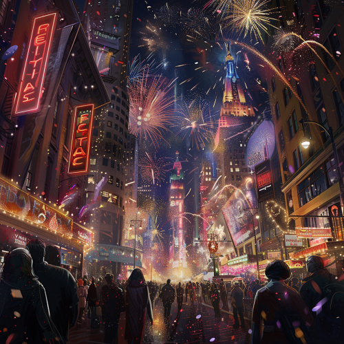 Happy New Year,fireworks --ar 16:9 --style raw --stylize 750 --v 5.2