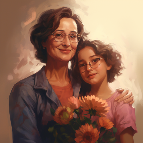 a colorful bouquet of flowers, in warm, pastel colors, boho style, text that says "Mother's Day", and says "Love You", painted with watercolors, white background --s 50
