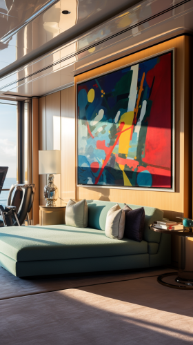 luxury yacht realistic montain see view with Cristal a windows and electric night Colors