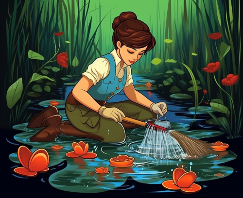 create an embroidered merit badge for cleaning a river in the South. Disney style illustration --no mountains --ar 11:9