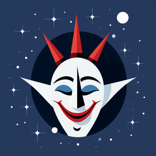 A simplistic tarot-card in a cartoonish style, depicting the Jungian Archetype of The Jester.