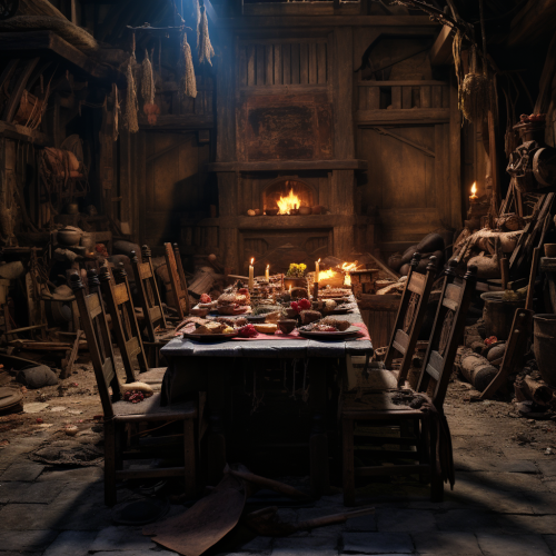humaniod robots, eating dinner around kitchen table 1950 rural america