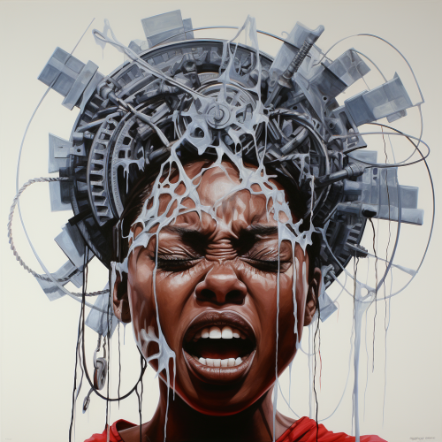 satisfied facial expression, looking into the future from a chaotic and very challenging situation, positive thinking, being able to see the good in the bad, confident attitude, crises are opportunities, atmospheric photography, hopeful tone, press photography, art photography, award-winning for the quality of appearance, eos nifty fifty, blurred, --ar 3:4 --q 2