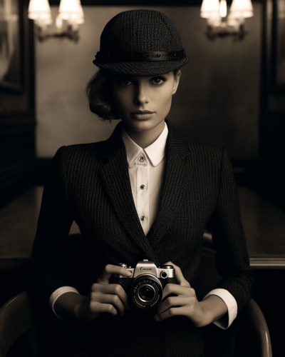 Photorealistic portrait of a elegant model holding a Chanel lipstick, studio lighting, high-end fashion photography, 8k resolution, hyperrealistic detail, soft focus background --ar 2:3 --s 750 --v 5.2