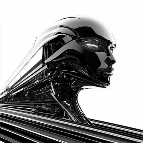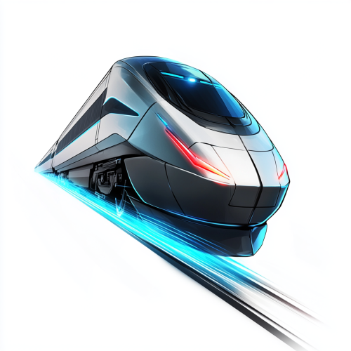 High-resolution logo on a white background, featuring an anthropomorphized train angled slightly to the side, as if charging forward down the tracks. The human-like metal face is intense, with the body of the train blurred slightly to emphasize motion. The tracks are visible below, receding into the distance, with stylized motion lines suggesting speed and power