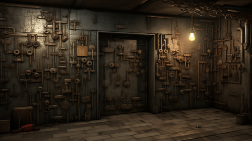 A realistic scene featuring a male conductor in a cluttered room. The conductor, dressed in formal attire such as a black suit with a white shirt and a bow tie, stands confidently at the front, using a baton to lead an imaginary orchestra. His posture is expressive and commanding, emphasizing his role in guiding the unseen musicians. Behind him, the room is filled with a chaotic arrangement of packages and boxes. These are prominently stacked on chairs throughout the room, with some packages also cluttering the floor. The packages vary in size, wrapped in brown or colorful paper, and some are adorned with labels and strings. The lighting is focused on the conductor, highlighting his elegant appearance and dynamic presence. The background, filled with the disordered packages and boxes on chairs, is slightly dimmer, creating a stark contrast with the conductor's professionalism.