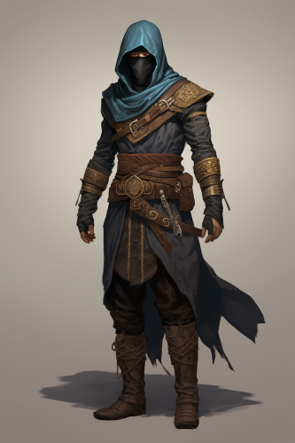 full body character design, master Theif wearing bandit mask, dungeons and dragons artwork --ar 4:6