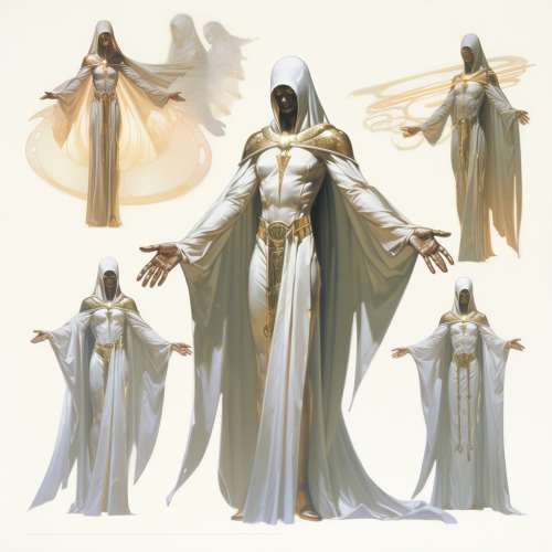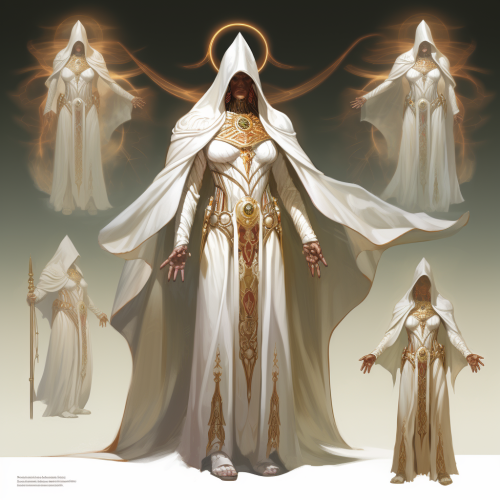 characters design sheet by alex ross, mage gods dressed in a long white cape, wearing a helm of jasper and ivory, inspires respect and fear, eyes like incandescent embers.