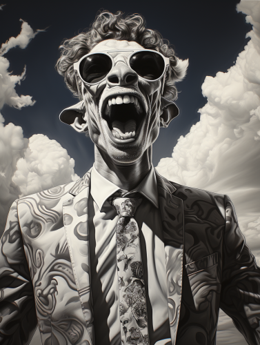 a laughing girl ,in a White suit, in the style of pop inspo, new york school, hallyu, white and black, piles/stacks, shiny/glossy, neoclassical --ar 3:4 --s 400 --niji 6