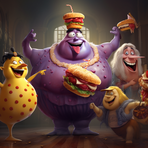 **a theme park called Brexitland. Highly details with crowds and rides. Nigel Farage mascots walking around - Image #2 <@206546176596639744>