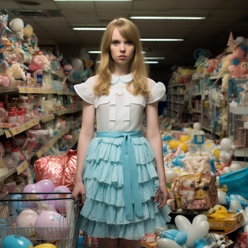 alice in wonderland magic mushrooms everywhere, ultra hd, 4k, colorful , during the day, realistic style. --ar 9:16 --v 6.0 --s 750 --style raw