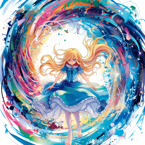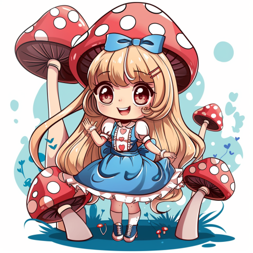 Cartoon, Alice in wonderland, chibi style, highly detailed, white background, clear background separation, 2d, kawaii, flat