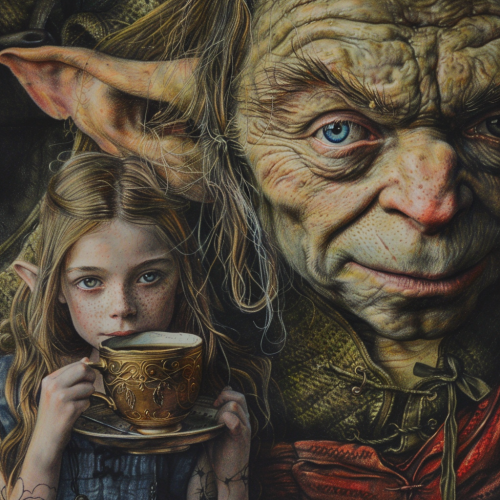 lord of the rings, hobbit, alice in wonderland style, coloured pencil and ink