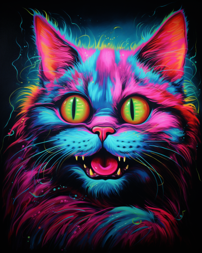 a 1890s glowing pattern of the chesire cat from alice in wonderland. by Paul Gervais. Neon colors. --ar 8:10