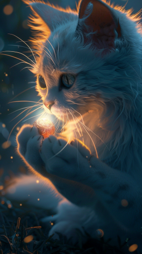 Thewhite cat steps onto a winding, glowing path made of shimmering, multicolored stones. Tiny fairies flutter around, casting soft light over the path, disney studio --ar 9:16 --v 6.0