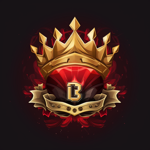 Create a logo with a crown and laurel underneath it. It is for a gaming channel on YouTube and needs to be simple, but have its own branded impression. There needs to be red gems in the front and sides. A golden sheen on the border. The crown will sit on the letters B and G - strong outline, bold, colorful, reds, high res, vector