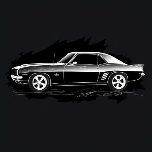 classic, Chevrolet camaro, side view silhouette, lines, drawing, white on black background, just car nothing else, lines, for tshirt, vector --v 5.0
