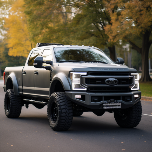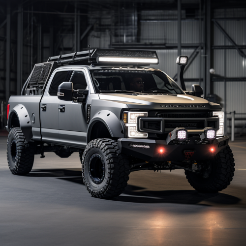 chevrolet 3500hd dually race truck. The rendering should be a 3/4 side view in a studio setting, with soft grey gradient background and subtle floor reflections. Canon EOS R5 (or any high-resolution camera suitable for automotive photography) Lens: Wide-angle lens, approximately 24-70mm, ensuring a full view of the car while also capturing its surrounding environment Shutter Speed: 1/160 sec (to guarantee sharpness) Aperture: f/5.6 (to achieve a balance between focusing on the car and providing some depth to the background) ISO: 100**
