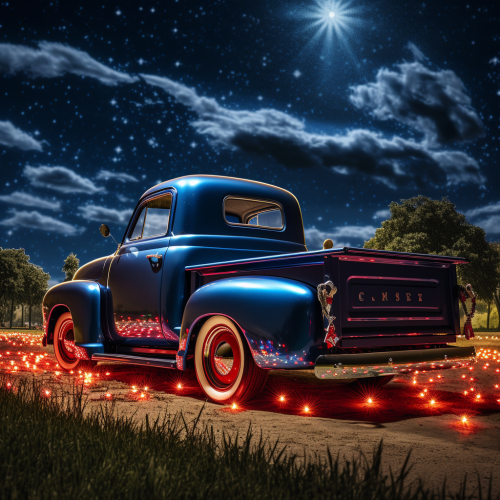 1953 chevy 3100 from behind overlooking a night sky of fireworks in a classic and very vibrant photo ultra-realistic, high quality, vivid with clear sharpness
