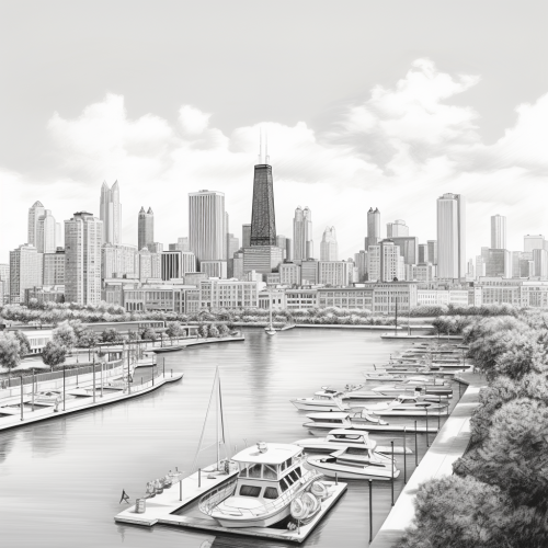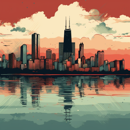 surreal illustration of the chicago skyline, the butcher billy style, minimal color palette, muted colors