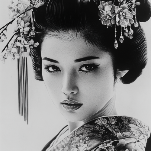 I’d love to get a realistic black and grey geisha tattoo. I’m looking for something highly detailed, especially with soft shading and lifelike features. I’d like her expression to be serene and the kimono to have intricate details. I have some reference images if that helps to show the style I’m aiming for
