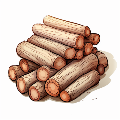 Isometric drawing of pile of wood logs, in the art style of 90 anime, in the style of studio ghibli. Light warm soft collours. White background.
