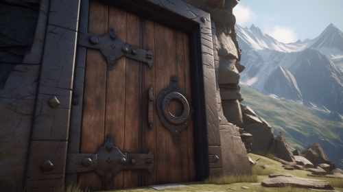 a man discovers a vault door in the side of a mountain in montana back country. Within the door is a dark themed modern weapon room full of rifles --style raw --v 6.1